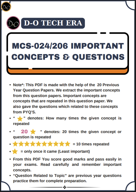 Prepare smarter, not harder, with our expertly curated MCS-024 Important Concepts & Questions PDF. Specially designed for IGNOU students, this comprehensive yet concise study material ensures success in your exams with minimal effort.